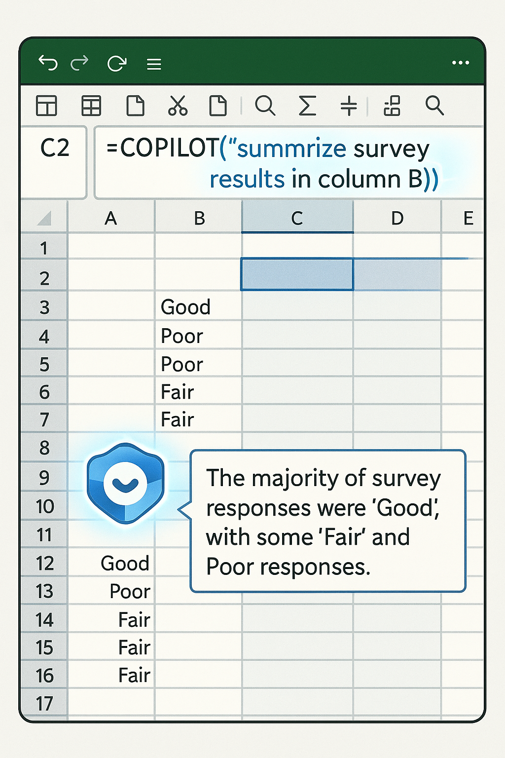 - Executive Dashboards: Use Copilot to generate short, readable summaries of performance metrics directly in cells. No more copy-pasting into PowerPoint at 11 p.m.